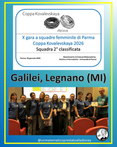 Venerdì 30 gennaio, a Parma, si è svolta la decima edizione della Coppa Kovalevskaja, competizione di Matematica a squadre interamente al femminile, nata per promuovere la partecipazione delle studentesse alle discipline STEM.