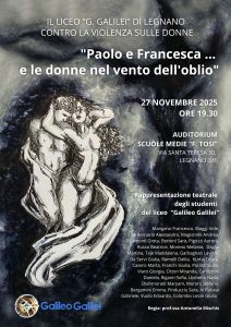 In occasione della Giornata internazionale per l’eliminazione della violenza contro le donne, gli studenti del Liceo Galilei coinvolti nel progetto “Liceo in scena”, sotto la guida della prof.ssa Antonella Mischis, porteranno sul palco una performance intensa e di grande impatto emotivo: “Paolo e Francesca … e le donne nel vento dell’oblio”.
